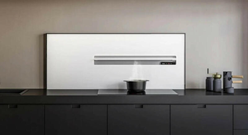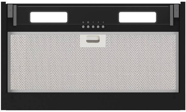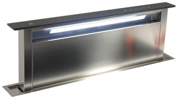 Pultba építhető páraelszívó fekete üveg előlappal és LED világítással. Az elszívó érintéses vezérléssel aktiválódik majd egy motoros mechanika segítségével automatikusan kiemelkedik a pultból, aztán a főzés végeztével visszasüllyed a munkapultba. Fekete üveg előlap érintésvezérléssel és AISI304 rozsdamentes acél elszívó test. Opcionális tartozék: FILTERING
