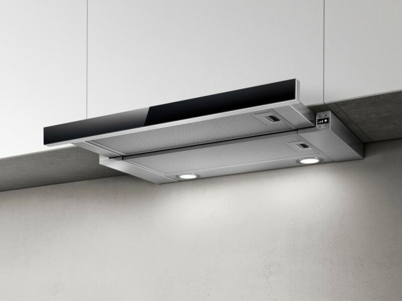 EVIDO FADE 60GBFELSŐSZEKRÉNYBE ÉPÍTHETŐ PÁRAELSZÍVÓ Fekete üveg, 60 cm Szabvány szerinti légszállítás (IEC): 155-356 m3/h Világítás: 2 x 2,1 W LED csík Zajszint: 49-65 dB Vezérlés: 3 fokozatú nyomógomb Csőcsonk mérete: O 150 mm Energiaosztály: C Speciális jellemzők: modern design, alumínium zsírszűrő Hozzával ó szénszűrő cikkszáma: 105486