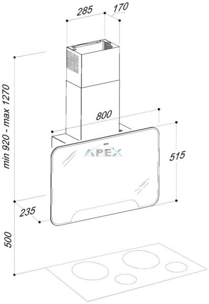 méret: 90 cm széles, felület: rozsdamentes acél, fekete üveg változat: kihúzható páraelszívó, vezérlés: 3+1 fok. érintőszenzoros, világítás: halogén 2*20W, IEC légszállítás (m3/h): 256-496(581), zajszint (db(A)): 45-62(66), nyomás BEP (Pa): 314, csatlakozócsonk mérete (mm): 150, alumínium zsírszűrő, opcionális: szénszűrő, energiaosztály: C, high performance Figye