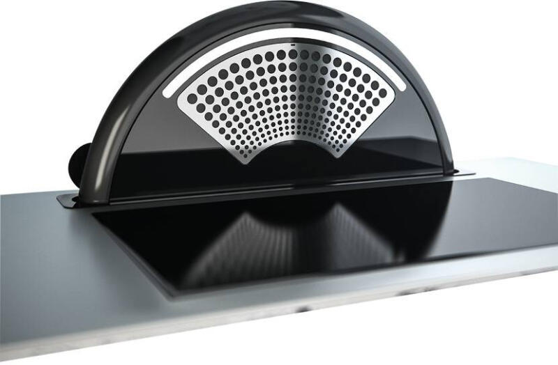 A Sunrise pultba építhető páraelszívó bekapcsoláskor kiemelkedik a pultból, majd kikapcsoláskor visszasülyed. Az elszívóhoz tartozik egy távvezérlő is, amely a termék összes funkcióját működteti. A dizájn a 40-es és 50-es évek folyékony és lágy formáját rajzolja meg és dolgozza fel futurisztikus módon.