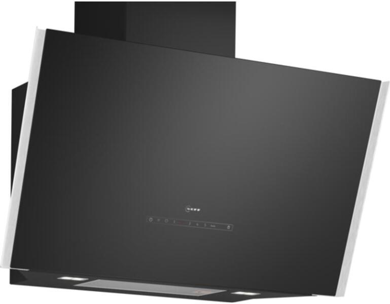 Kürtős páraelszívó - N90 - Home Connect - Nemesacél oldalélek - 90 cm - döntött fekete üvegernyő - 1 007 m3 - 3+2 fokozat - Energiaosztály: A+ - 70 dB(A) re 1pW - fém zsírszűrő - Érintőgombos vezérlés - 2x3W LED világítás