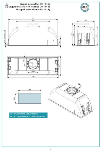 A Falmec továbbfejlesztette a méltán sikeres Gruppo incasso elszívó családot. A Gruppo Incasso Plus elszívónál már a a világítás fényerejét is lehet szabályozni a színhőmérséklet mellett. Az elszívót kétféle üzemmódban lehet használni lehet, kivezetéssel és belső keringtetéssel. A hatékony elszívásról egy nagyteljesítményű (800 m3/h) motor és a perimetrikus r