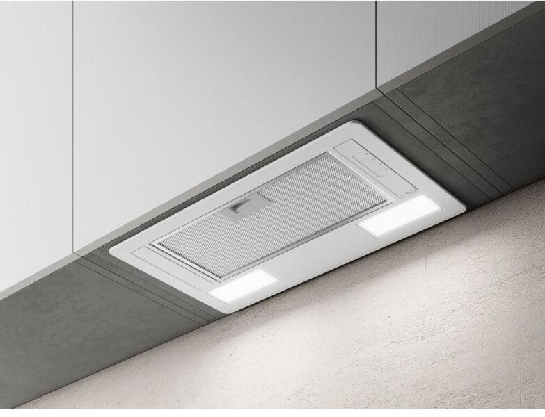 FELSŐSZEKRÉNYBE VAGY KÜRTŐBE ÉPÍTHETŐ PÁRAELSZÍVÓ 52 cm széles, fehér Szabvány szerinti légszállítás (IEC): 270-365 m3/h Világítás: 2 x 3 W LED (2700 K) Zajszint: 58-66 dB Vezérlés: 3 fokozatú nyomógombos Csőcsonk mérete: O 120 mm Energiaosztály: D Speciális jellemzők: könnyű beszerelés