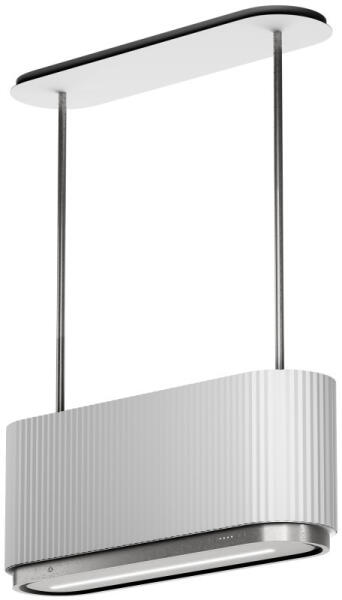 Ciarko Design MONO W 90 cm fehér sziget páraelszívó A készülék speciális kialakítású házán 67 barázda található. WARM2ColdLED világítás. Minden készülékhez távirányító tartozik. A Mono W páraelszívó külsője kézzel festett. A háromrétegű festékbevonat növeli a zsíros szennyeződésekkel szembeni ellenállást. Érintésmentes, kézmozdulat-vezérlésű rendszer