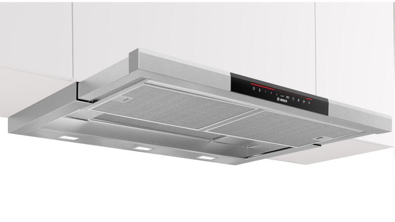 BOSCH DFS097K51 Beépíthető teleszkópos páraelszívó, Szívóteljesítmény 700mc/h, Touch control, PerfectAir érzékelő, EcoSilence Drive, B energiaosztály, 90 cm, Rozsdamentes acél Jellemzők:EcoSilence Drive: nagy teljesítményű, energiatakarékos motor a páraelszívókhoz. Intenzív lépés - frissíti a levegőjét a konyhában;Extra csendes: ultra nagy teljesítményű páraelsz