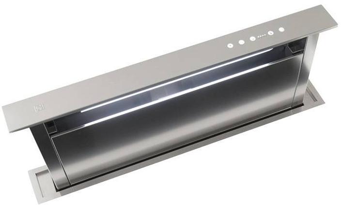 pultba építhető elszívó Az elszívó érintéses vezérléssel aktiválódik majd egy motoros mechanika segítségével automatikusan kiemelkedik a pultból, aztán a főzés végeztével visszasüllyed a munkapultba. Inox burkolat érintésvezérléssel és AISI304 rozsdamentes acél elszívó test. LED világítással. Opcionális tartozék: FILTERING KIT SKFHE3 Nagy hatékonyságú regener