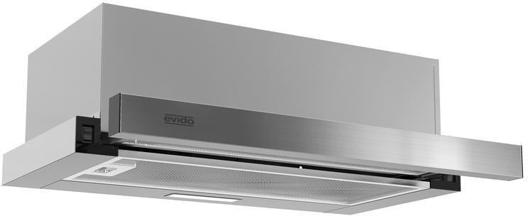 EVIDO SLIMLUX 50GBTELESZKÓPOS KIHÚZHATÓ PÁRAELSZÍVÓ Fekete üveg front, 50 cm Szabvány szerinti légszállítás (IEC): 160-400 m3/h Világítás: 2 x 3 W LED Zajszint: 54-69 dB Vezérlés: 2 fokozatú billenőkapcsoló Cső csonk mérete: O 150 mm Energiaosztály: C Speciális jellemzők: szürke festett ház, GW modell fehér festett ház, helytakarékos módon elhelyezett kivágás