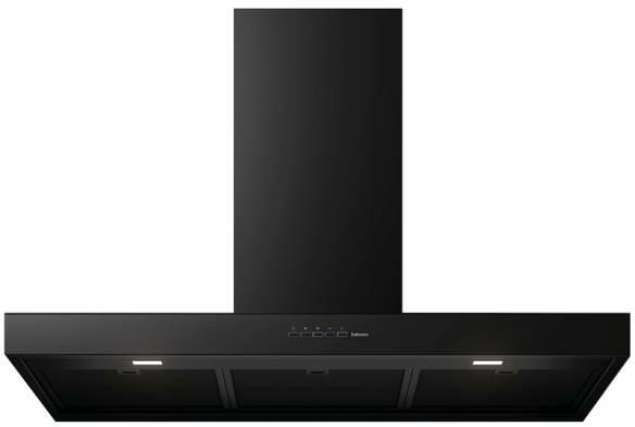 Forma, kivitel: Fektetett T|Szélesség: 90 cm|Szín: fekete|Vezérlés: elektronikus|Fokozatokszáma: 3+1 (turbó)|Motorok száma: 1|Légszállítás: 600/480 m3/h|Zajszint: 47-65 dB(A)|Nyomásérték: 337 Pa|Utószellőztetés|Világítás: 2x1,2w LED|Csőcsatlakozás: Javasolt 150 mm / min. 125 mm|Energiaosztály: B|Led világítás 3200 K