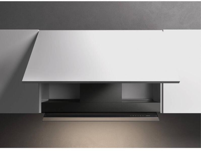 Falmec Virgola touch páraelszívó A Falmec virgola touch készülék több új fejlesztést is kapott. Az elszívó vezérlését a kihajtható légterelő üveglapon találjuk. Itt lehet szabályozni a motor teljesítményét és a LED szalag fényerejét, illetve színhőmérsékletét is. A LED világítás a kihajtható üveglapnak a belső felületére került, ami így pontosan a főzőfel
