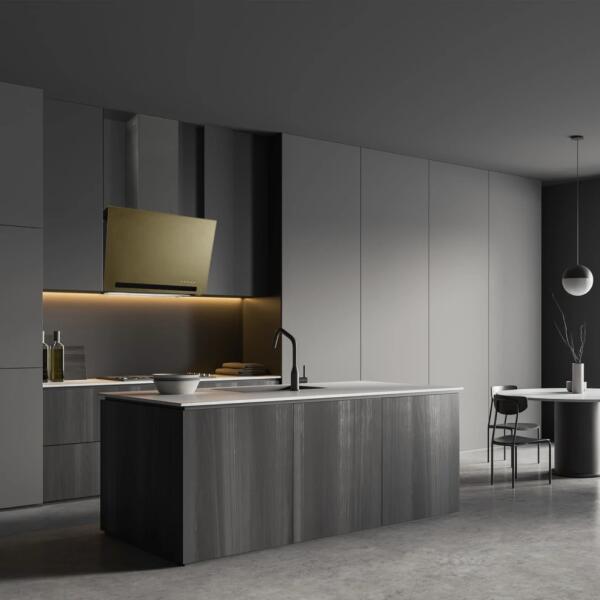 Csőcsatlakozás: Javasolt 150 / min. 120 Forma, kivitel: Döntött Szín: Bronz Vezérlés: Érintővezérlés Világ tás: 1x7w LED szalag Zajszint: 53-65 Motorok száma: 1 Légszállítás: 500/442 Utószellőztetés : Igen Szélesség: 80 Fokozatok száma: 3+1 (turbó)