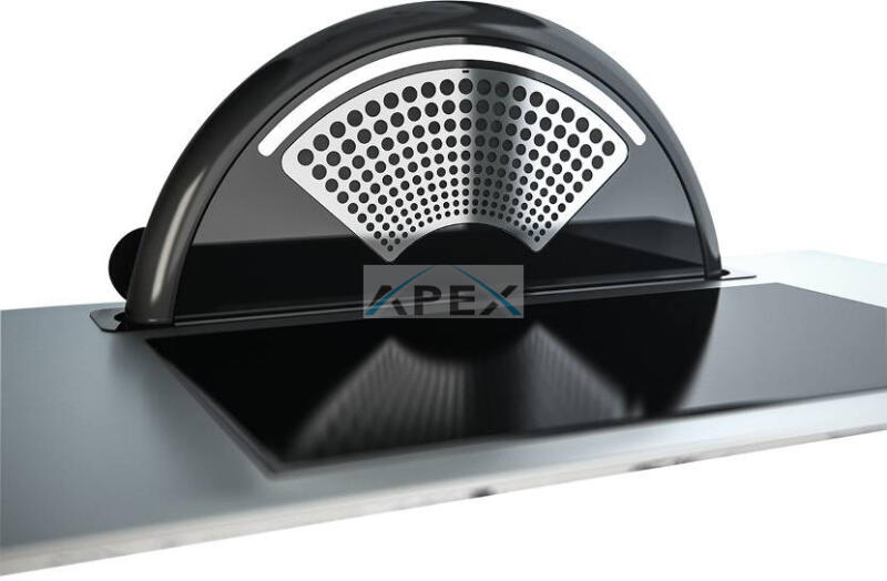 A Sunrise pultba építhető páraelszívó bekapcsoláskor kiemelkedik a pultból, majd kikapcsoláskor visszasülyed. Az elszívóhoz tartozik egy távvezérlő is, amely a termék összes funkcióját működteti. A dizájn a 40-es és 50-es évek folyékony és lágy formáját rajzolja meg és dolgozza fel futurisztikus módon.