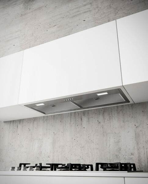 A fény és a fém tökéletes egyensúlya. Ez a két elem tökéletes harmóniában van egymással így adva életet egy egyedi páraelszívónak. A mindössze 20 cm magas elszívórendszer teljesen be van építve az álmennyezetbe és egy csendes, energiatakarékos de erős szénkefe nélküli motorral van felszerelve. A LED világítás és az opál üveget tartalmazó fénygyűrű egyenletes