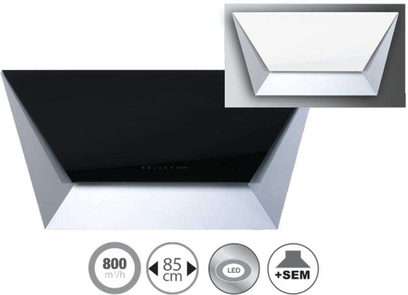 EAN kód: 8034122351988 kategória: fali cikkszám: CPQN85. E0P2#ZZZF491F szín: fehér üveg szélesség: 85 cm légszállítási adatok: (*max. légszállítás szabad kivezetés esetén / EN61591 szabvány szerint) 800/720 m 3 csőcsatlakozás: 150 mm zajszint: 48-60 dB(A) min-max világítás: 2x1,2W LED energiaosztály: A forma, kivitel: döntött vezérlés: érintővezérlés hátsó kiveze