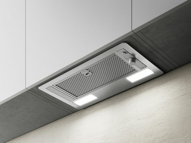 légszállítás maximum (IEC): 420 m3/h, világítás: 2x3 W LED, tekerőgombos vezérlés, kivezetéses üzemmód, szélesség: 600 mm, szín: inox, zajszint: 68 dB(A), energiaosztály: B, csőcsonk átmérője: 120 mm