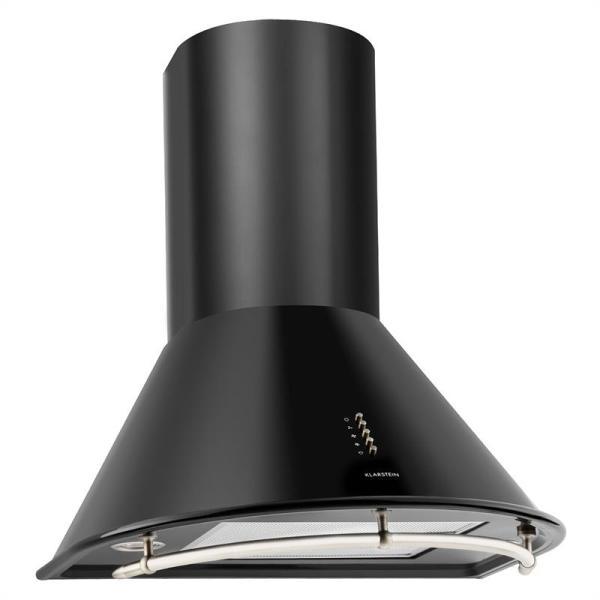 Klarstein Noir, retro kémény páraelszívó, inox, fekete, 60 cm, 430 m3 Kémény páraelszívó három teljesítmény fokozattal, két fénnyel és minőségi szerkezettel. Tűzhely felé felszerelendő. A Klarstein cég kémény páraelszívója attraktív kiegészítője a kis és közepesen nagy konyháknak. Szagokat és gőzt szív be, amivel biztosítja, hogy a kellemes légteret nagy kony