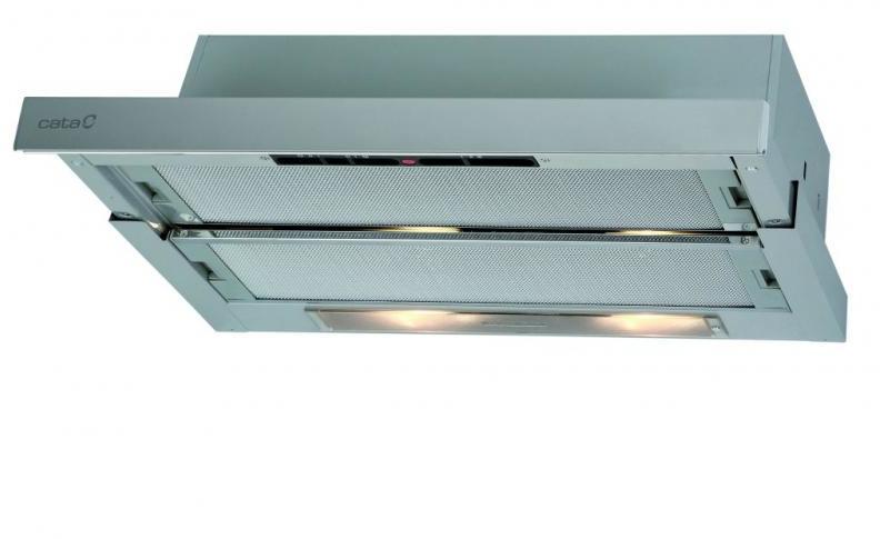 Gyártó: Cata Modell: TF-5060 Tulajdonságok: Szélesség: 60 cm Világítás: 1x40W normál 3 fokozat Teljesen beépíthető teleszkópos páraelszívó Kihúzható / levehető előlap Csúszókapcsolós vezérlés Mosható fém zsírszűrő Teljesítmény szabad kivezetés: 350 m3/h Teljesítmény EN 61591 15 Pa nyomáson: 240 m3/h 120 mm átmérőjű kivezetés