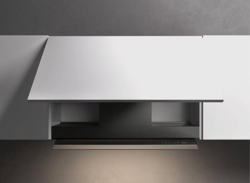 Falmec Virgola touch páraelszívó A Falmec virgola touch készülék több új fejlesztést is kapott. Az elszívó vezérlését a kihajtható légterelő üveglapon találjuk. Itt lehet szabályozni a motor teljesítményét és a LED szalag fényerejét, illetve színhőmérsékletét is. A LED világítás a kihajtható üveglapnak a belső felületére került, ami így pontosan a főzőfel