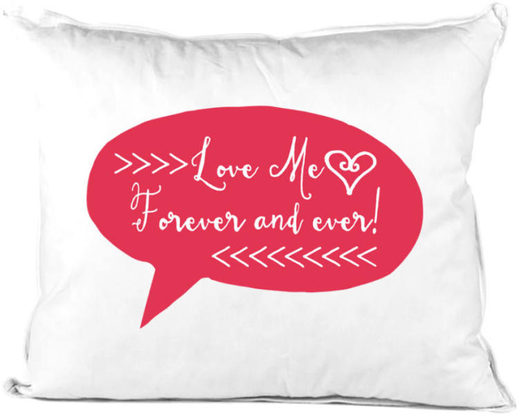 Love me forever and ever feliratos és mintás párna Valentin napra. Love me forever and ever feliratos és mintás párna Valentin napra. Lepd meg szerelmed egy nagyszerű ajándékkal. A párnahuzatra digitális nyomtatóval kerül rá a grafika, ezért minősége kiváló, tapintása kényelmes. Díszpárnának ajánlott, de mindennapi alváshoz is használható. Párnahuzat mérete: 40x40cm P
