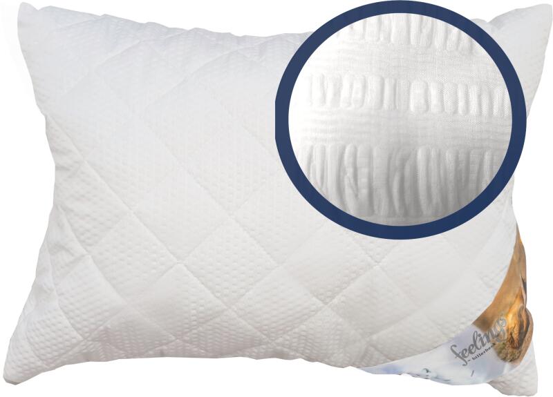 Steppelt Medical betétes Méret: 50x70 Borítás: 50%pamut-50%poliészter, fehér steppelt levehető húzózáras tok, 200g/m2, Betét borítása fehér szövet, töltete: 100% szilikonszálas poliészter Tulajdonság: 90°C-on mosható