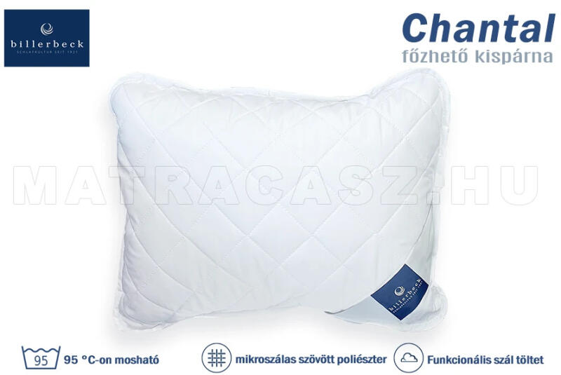 Billerbeck Chantal funkcionális szál töltetű kispárna megnövelt pára-áteresztő képességgel rendelkező, bőrbarát anyagok felhasználásával . A Billerbeck CHANTAL párnái megnövelt pára-áteresztő képességgel rendelkező, bőrbarát anyagok felhasználásával, ideális alváskomfortot kínáló termékek. Ideális töltet, amely hosszú távon biztosítja a kellemes pihenést.