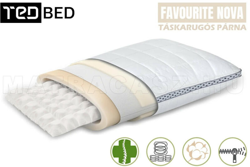 Az innovatív Favourite Nova ortopéd táskarugós párna az intelligens i-Springs Super Comfort technológiára épül, mely maximális kényelmet és ortopédiai támogatást nyújt. A párnában található rendkívül rugalmasak apró rugók alkalmazkodnak a fej és nyak vonalához anélkül, hogy feszültséget vagy nyomást okoznának, amikor alvás közben pozíciót változtat. Ez az innov