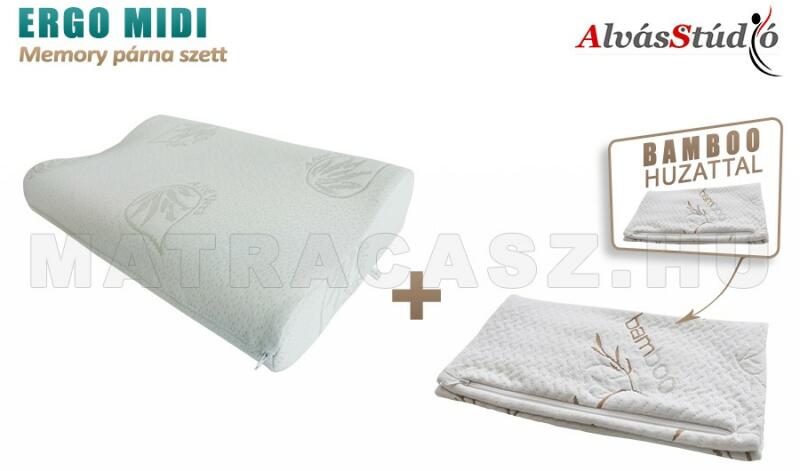 Magas minőségű AlvásStúdió Ergo Midi memory párna a fej, illetve nyak anatómiájának megfelelő alátámasztást biztosít. 1db extra tartalék Bamboo huzattal. Megtámasztja a nyaki csigolyákat is pihenés közben. A magas minőségű formahabosított AlvásStúdió Ergo Midi memory párna a fej, illetve nyak anatómiájának megfelelő alátámasztást biztosít. Ergonomikus kialakít