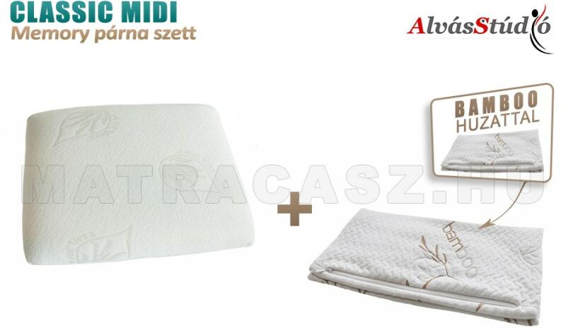 Hagyományos formájú memory kispárna 1db extra tartalék Bamboo huzattal. Hason-alvóknak, párna-gyűrögetőknek, ill. gyerekeknek ajánlott. Az AlvásStúdió Classic Midi memory párna ötvözi a hagyományos párnák kényelmét és a memória hab alakfelvevő tulajdonságát, biztosítva a mindig megfelelő alátámasztást és a hosszú élettartamot. Ez a hagyományos alakú, nagy sűr
