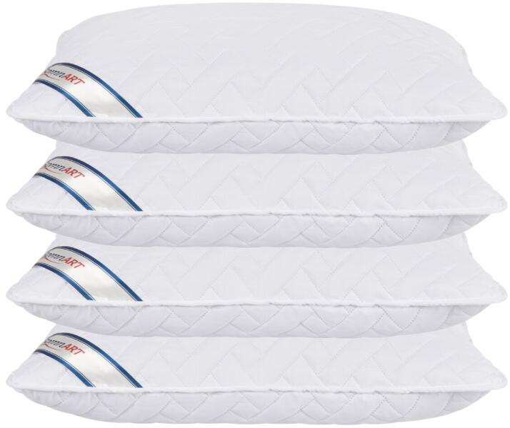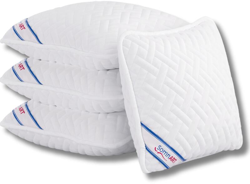 4 db Hygiena Somnart steppelt párna készlet, 40x40x16 cm, mikroszálas, antisztatikus, 95°C-on mosható, szilikongyapot töltelék 95 fokon mosható Keménységi szint: közepestől keményig Töltőanyag: 100% hipoallergén poliészterszálas SuperBall® típusú labda, antisztatikus és hidrofil tulajdonságokkal kezelt Elülső anyag: 100% poliészter mikroszálas, szálcsiszolt a nagyobb k