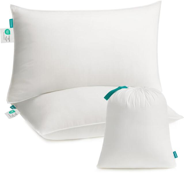 SONGMICS Ágy Párnák, 74 x 48 cm, 800 g Töltet, Puha Huzat, Kefélt Poliészter Szövet, Párna, Géppel Mosható és 60 °C-on Szárítható, Tárolótáskával, Felhőfehér [Optimális töltet] Minden párna bőségesen ki van töltve 800 g gondosan tesztelt keverékkel: 65% puha 3D és 35% támogató 7D poliészterszálak. Ez az ideális arány garantálja a kényelmet és a frissítő regg