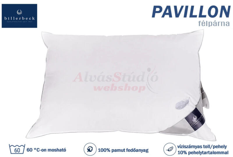 A Beillerbeck Pavillon toll/pehely félpárna egy kényelmes és megfizethető választás a Billerbeck kollekcióból a hagyományos toll párnákat kedvelők számára. Tökéletesen puha, így hason alvóknak is ideális választás. A Pavillon párna kényelmes és puha huzata 100% pamut melynek szélei körben kék mintás paszpóllal vannak díszítve. A töltet víziszárnyas toll 10% pehel
