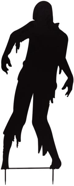 Zombie silhouette man as eye catcher in the garden Are you planning a motto- or Halloween party and looking for a matching highlight for the appropriate scary atmosphere? With the metal silhouettes of Europalms you set accents or create a complete horror scenery that will inspire your guests. The 135 cm high silhouette represents a male zombie with shredded garments. The undead gives the impressio