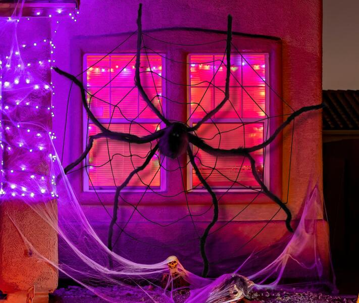 Pókháló pókkal Teremtsen felejthetetlen Halloween hangulatot különféle kísérteties dekorációkkal , például ezzel a pókhálóval . Ez a kiegészítő remek dekoráció bármilyen Halloween partihoz . anyag: poliészter méret: pókháló max 150 cm, pók max 90 cm