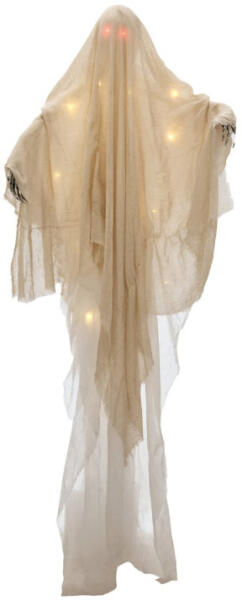 Lógó figura Halloween szellem piros LED szemekkel 3db AA típusú elemmel működik - mely nem tartozék Vezérlés a készülék be-/kikapcsolójával Vörösen izzó szemek A törzs fehéren izzó Helytakarékos tárolás Könnyen összeszerelhető A karok formázhatók anyag: hungarocell, műanyag, textil mérete: 1,8m*10 cm * 1,1 m A csomag tartalma 1 x figura, 1 x használati útmutató cso