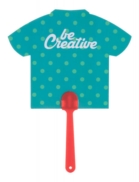 Laminált papírból készült, egyediesíthető legyező, műanyag nyéllel. A papír rész egyedi formában, mindkét oldalon egyedi grafikával készül. Minimális rendelési mennyiség: 100 db.