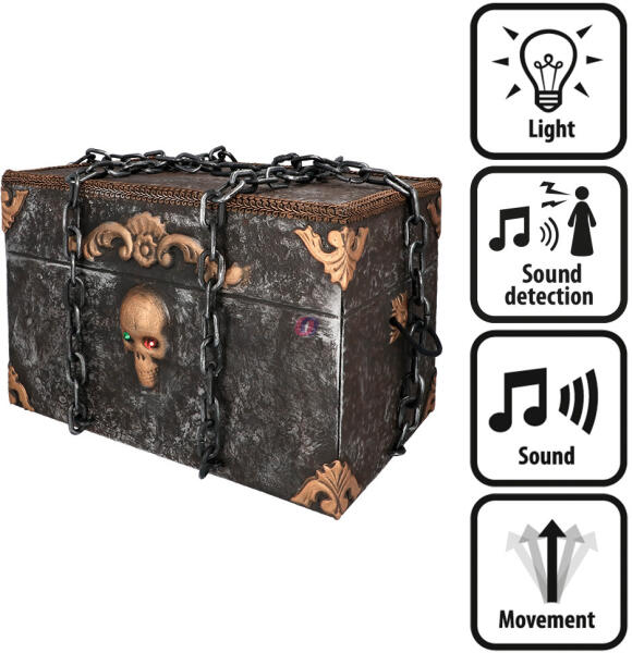 Fedezd fel a legrémisztőbb halloween dekorációkat és kellékeket a Deconline. hu Halloween kollekciójában! Halloweeni kalóz láda dekor animatronikus, 50 cm, mozgó, hangot adó kedvező áron, villámgyors szállítással! Igazány látványos halloweeni dekorációt keresel? Animatronikus, animált halloweeni figuráink segítségével páratlan halloweeni hangulatot varázsolhatsz a ker