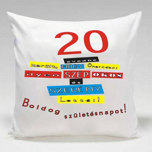 Tréfás párna 20. szülinapra - 20 évedbe került felirattal. Szín: fehér Mérete: 29 x 26cm Töltelék: habszivacs, vatelin