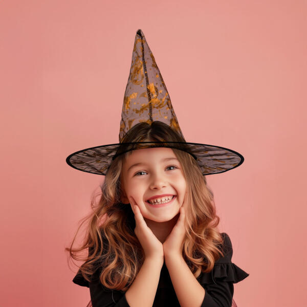 Halloween-i boszorkány kalap - 4 szín, poliészter - 38 x 34 cm Hegyes, 4 színben kapható boszorkánykalap, amely kiváló halloween-i jelmez kiegészítő. A kalap külső részén aranyszínű, csillogós halloween-i motívumok találhatóak. Lila, kék, rózsaszín és fekete színben Arany színű glitteres motívumok Nagyszerű halloweeni kiegészítő Használható akár farsangok alkalm
