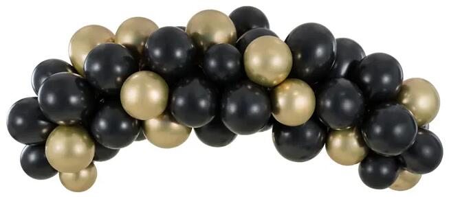 Lufi girland - fekete/arany Lufik egyedi és esztétikus kiegésztője minden partinak vagy társadalmi eseménynek . Készítsen lufi díszítést a szülinap napján és varázsoljon egy feledhetetlen napot az ünnepeltnek. alkalmas levegővel való felfújásra tartalom : 60 drb lufi (48 x fekete, 12 x arany), 1 x átlátszó girland (2,5 m) hossz : 200 cm