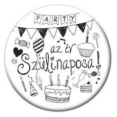 Színes, számos kitűző, mely kitűnő kiegészítő az ünnepeltnek. Mérete: 5,5 cm. Anyaga: fém.