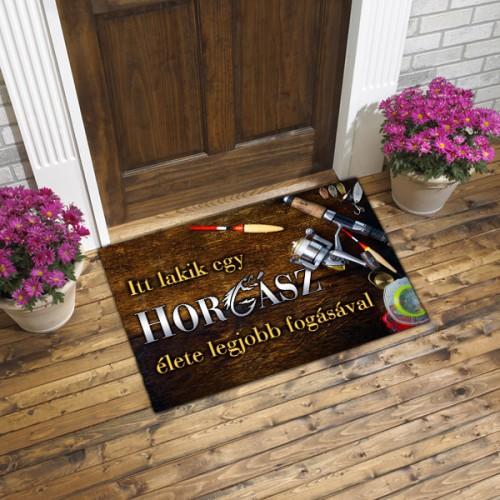 Színes lábtörlő - Itt lakik egy horgász élete legjobb fogásával felirattal Ajándék ötlet horgász kedvelőknek szülinapra, névnapra, barátoknak, rokonoknak, kollégáknak. Színes lábtörlő frappáns felirattal, gumírozott hátoldallal. Mérete: 60 cm x 40 cm Anyaga: filc Miért ne tehetnéd már az ajtód előtti részt is különlegessé? Garantált, hogy, minden vendég mosolyo