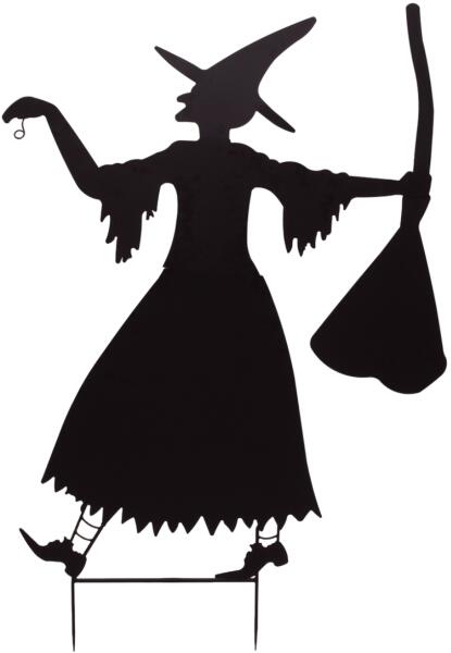 Witch silhoutte as eye catcher in the garden Are you planning a motto- or Halloween party and looking for a matching highlight for the appropriate scary atmosphere? With the metal silhouettes of Europalms you set accents or create a complete horror scenery that will inspire your guests. The 140 cm large silhouette seems to move directly towards your visitors. Optically it corresponds exactly to a