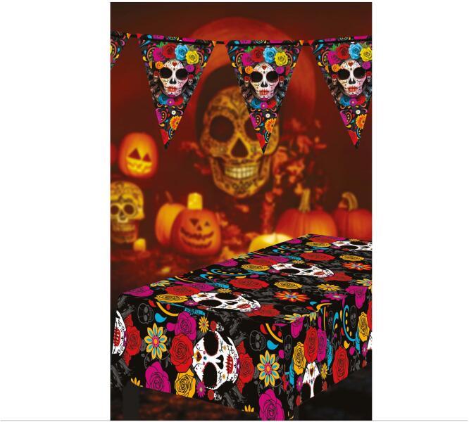 Abrosz - Catrina Az abrosz alkalmas Halloween partira vagy más ünnepi alkalomra. Lepje meg vendégeit kiegészítőkkel és parti díszekkel egy kísérteties bulin . tartalom : 1 db méret : 137 x 274 cm anyag : PVC