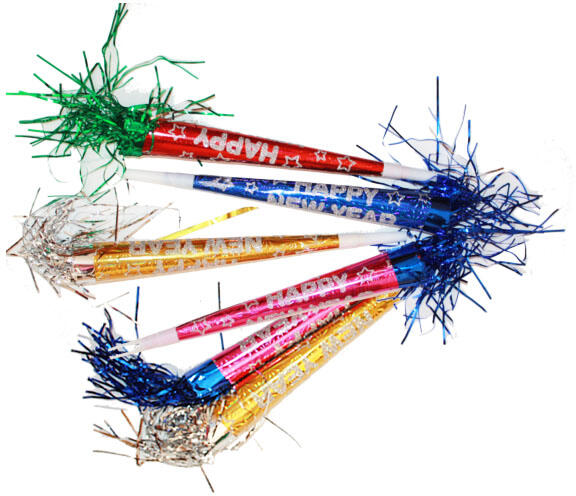 Papír trombita, 6 db. Hologramos glitteres Happy New Year felirattal. Csak csomagra vásárolható!