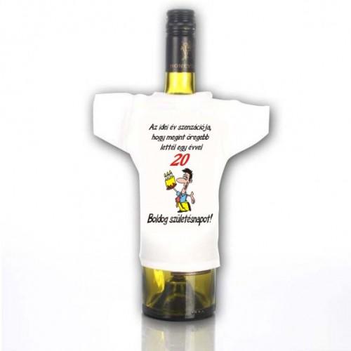 Üvegpóló 20. szülinapra - Az év szenzációja, hogy megint öregebb lettél egy évvel felirattal Anyaga: 100% pamut Mérete: 17 x 12cm