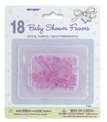 Kedves, kislányos színvilágú dekorációs kellék. Rögzítheted a becsomagolt ajándékra vagy dekorálhatod vele az ünnepi asztalt is. Átlátszó, rózsaszín dekorációs cumi műanyagból. Mérete: 1 cm x 2,5 cm. Anyaga: műanyag. 18 db cumi/csomag.