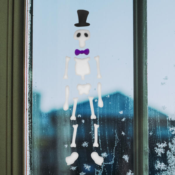 Halloween-i színes ablakmatrica, amely alkalmas üvegek, tükrök, fényes felületek dekorálására. Könnyen felragasztható és nyom nélkül eltávolítható. Ragasztóanyagot nem tartalmaz, maga a gél ragad, amely langyos vízzel mosható, így újra felragad az üvegfelületre. Öntapadós Kétolda las Színes halloween-i forma Forma:CsontvázAnyaga:PVCMérete:~46 0 x 12 x 3 mm