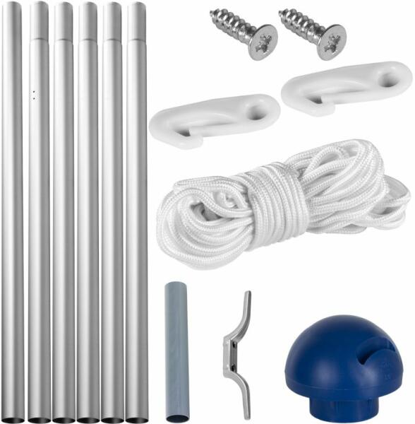 Alumínium árboc karabinerrel és nylon vonókötéllel, végdarabbal és földelt hüvellyel. Öt pozícióban állítható állvány beépített merülőfogantyúkkal. Termék részletek: teljes hossz: kb. 6,5 m, beleértve a földelő aljzatot állítható magasság: kb. 92 - 112 cm átmérő : 5 cm anyaga: rozsdamentes alumínium teljes súly: kb. 3,3 kg Vontatókötél: hossza : kb. 11 m át