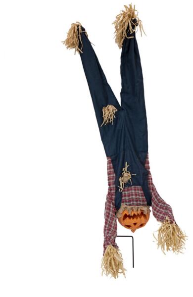 Animated figure with sound and motion effect The pumpkin man from Europalms will be the center of attention at any Halloween party. He is the perfect Halloween twist on a scarecrow, but is he also equipped for the typical tasks of a scarecrow?In his checked shirt and unmistakable dark blue farmer's dungarees with straw hanging out of them, "Tom" perfectly embodies the traditional motif of a straw