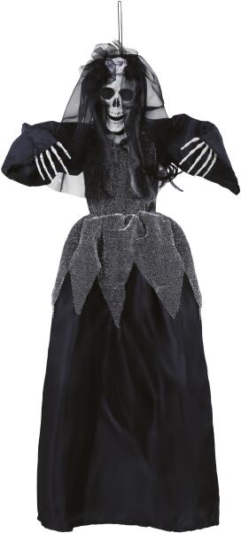 Függő dekoráció - Menyasszony csontváz 90 cm Kísérteties Halloween partit tervez? Teremtsen felejthetetlen Halloween hangulatot különféle kísérteties dekorációkkal . Ez a menysszony csontváz függő dekoráció remek parti kiegészítője lehet minden Halloween dekorációnak az ünnep szerelmeseinek. mennyiség: 1 db méret: 90 cm anyag: poliészter, PVC