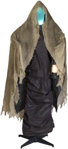 Faceless grim reaper with LED and sound effect The faceted cover reveals kaleidoscopic effects Lantern multicolor glowing Sound effects Arms shapeable